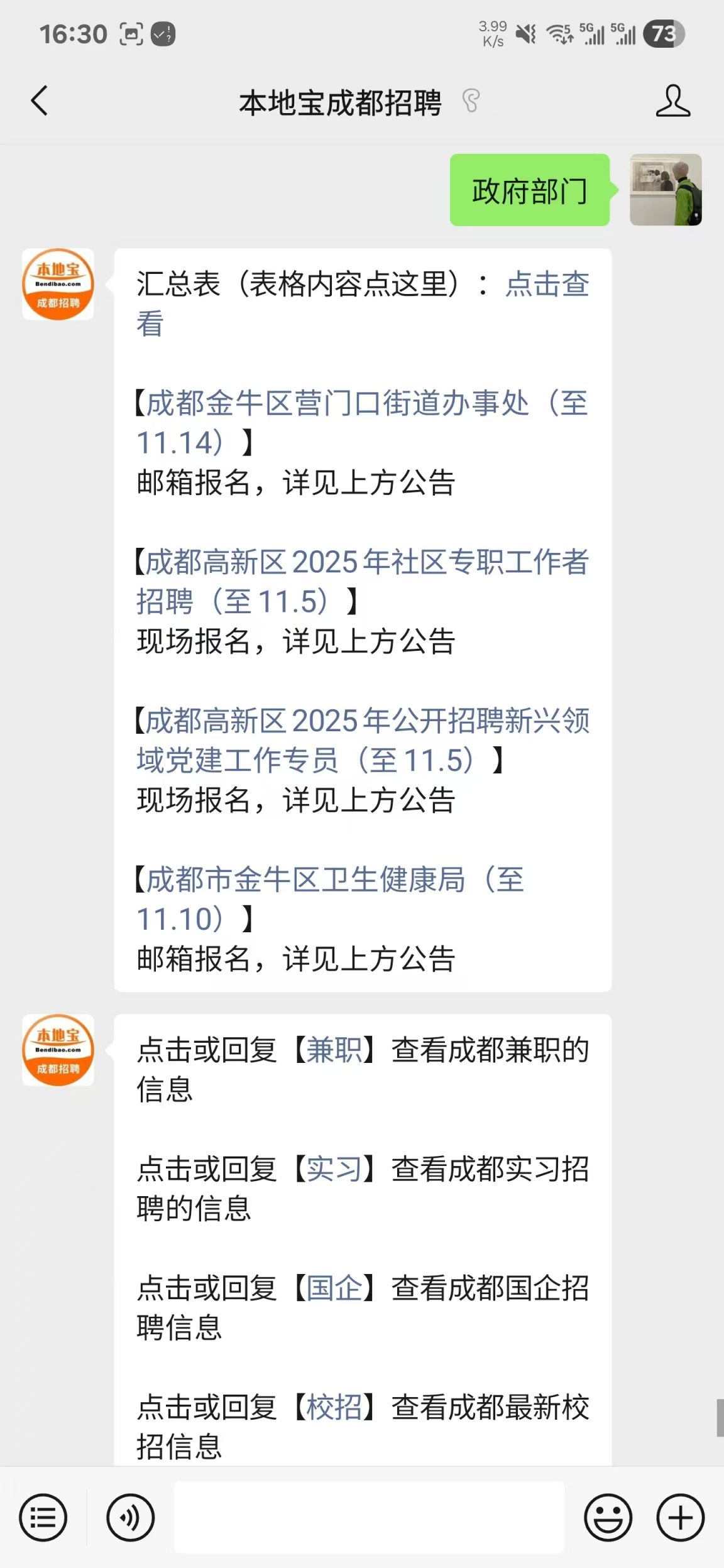 温馨提示:微信搜索公众号【本地宝成都招聘】,关注后在对话框回复【政府部门】即可查看成都政府部门招聘最新消息、报名时间及入口等消息,持续更新中!