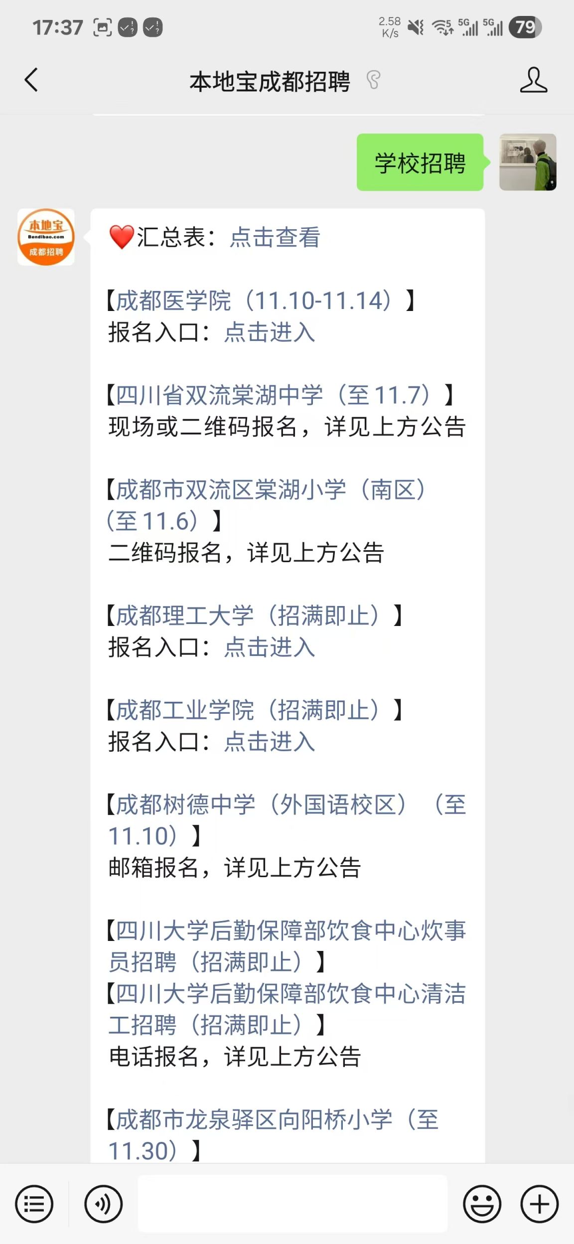 温馨提示:微信搜索公众号【本地宝成都招聘】,关注后在对话框回复【学校招聘】即可查看成都及周边学校教师等岗位招聘最新消息、报名时间、报名入口、岗位表等信息!