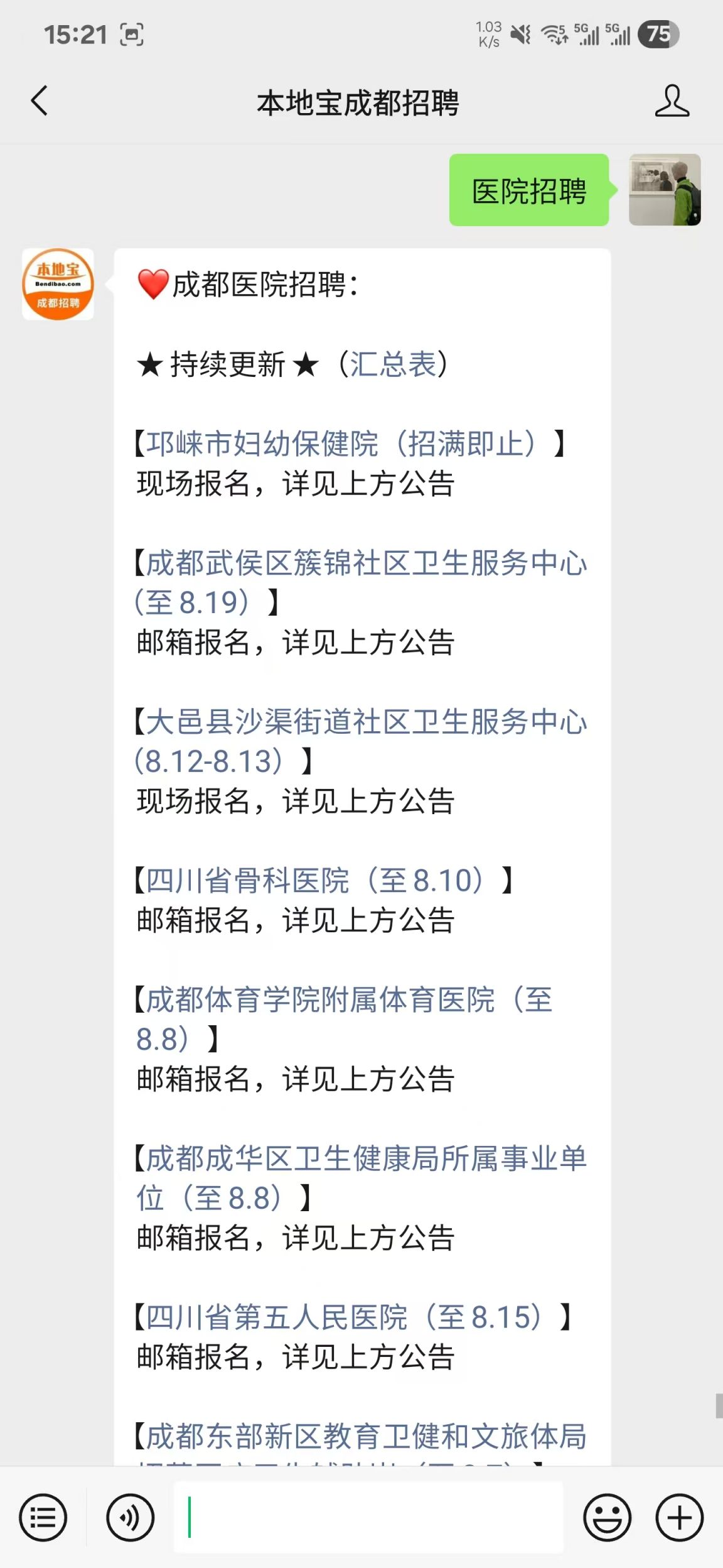 温馨提示:微信搜索公众号【本地宝成都招聘】,关注后在对话框回复【医院招聘】即可查看成都及周边医院招聘最新消息、报名公告及入口、岗位表等消息,持续更新中!