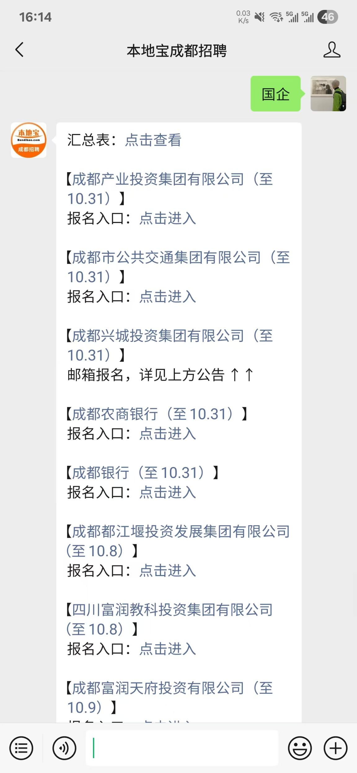 温馨提示:微信搜索公众号【本地宝成都招聘】,关注后在对话框回复【国企】即可查看成都及周边城市国企招聘信息汇总、招聘公告和岗位、报名时间、报名入口等信息!