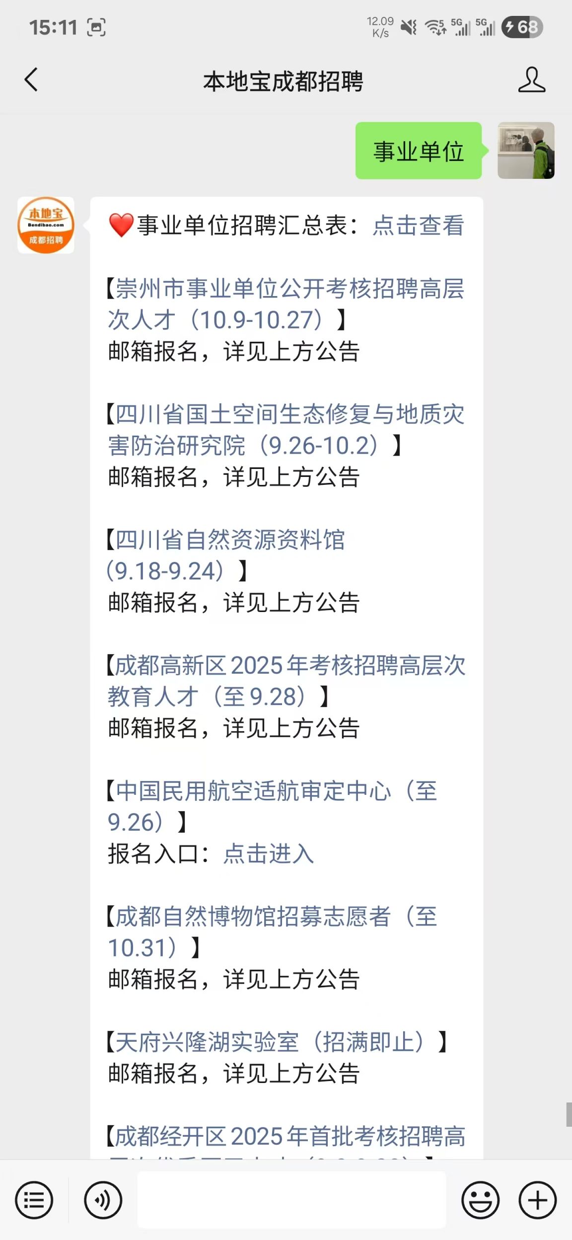 温馨提示:识别上方二维码关注【本地宝成都招聘】公众号,关注后在对话框回复【事业单位】即可查看成都及周边事业单位最新消息、报名公告及入口、岗位表等消息,持续更新中!