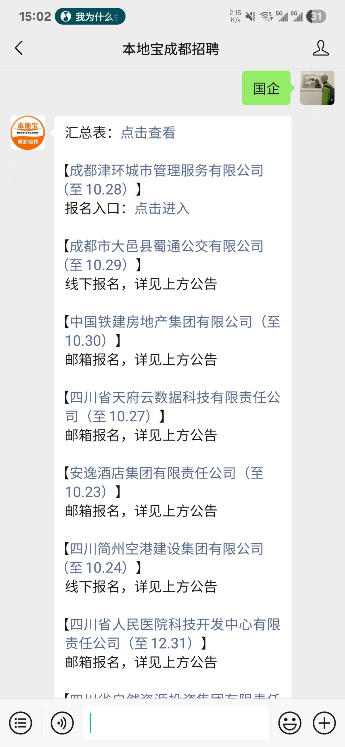 温馨提示:微信搜索并关注【本地宝成都招聘】公众号,对话框回复【国企】【事业单位】等可获成都最新招聘公告、招聘条件、招聘岗位、报名入口等相关信息。