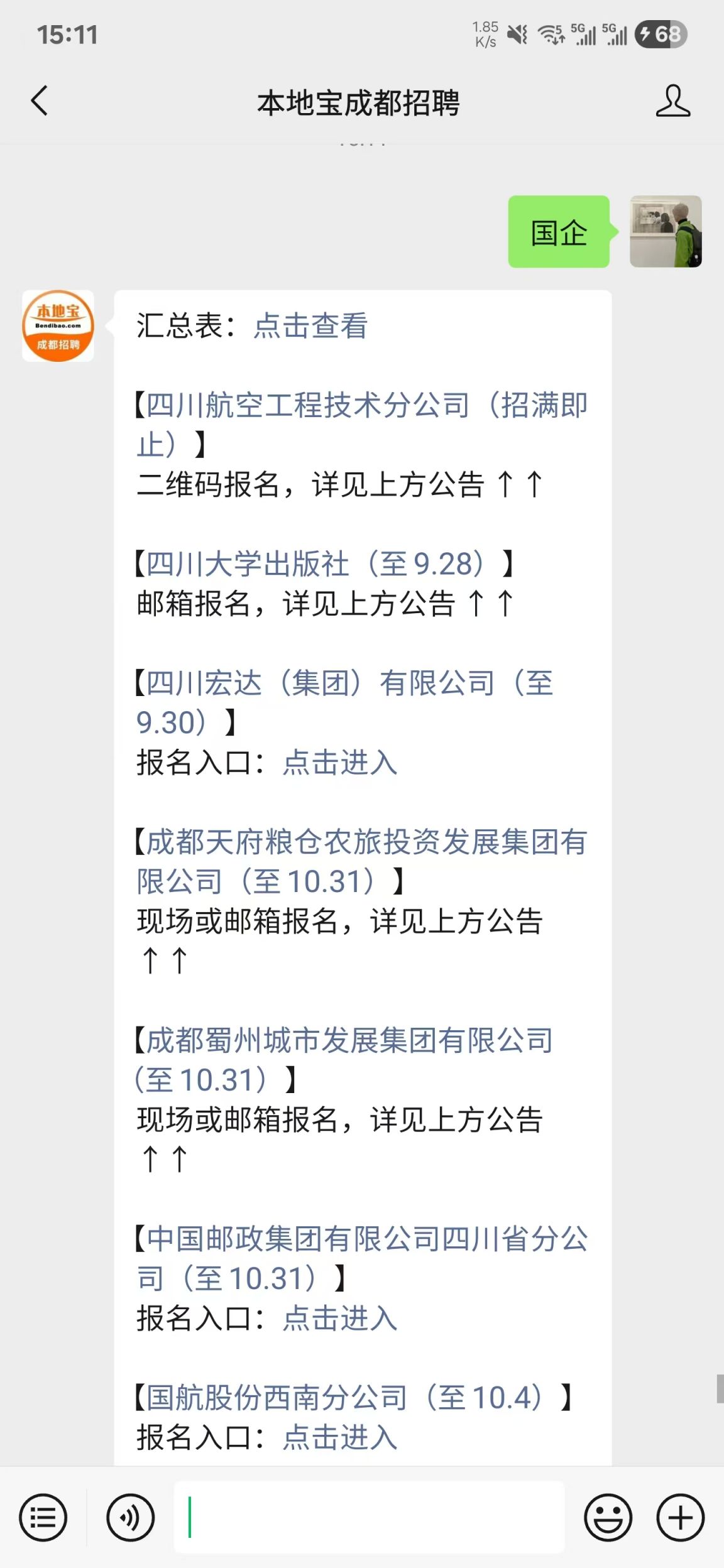 温馨提示:微信搜索公众号【本地宝成都招聘】,关注后在对话框回复【国企】即可查看成都及周边城市国企招聘信息汇总、招聘公告和岗位、报名时间、报名入口等信息!